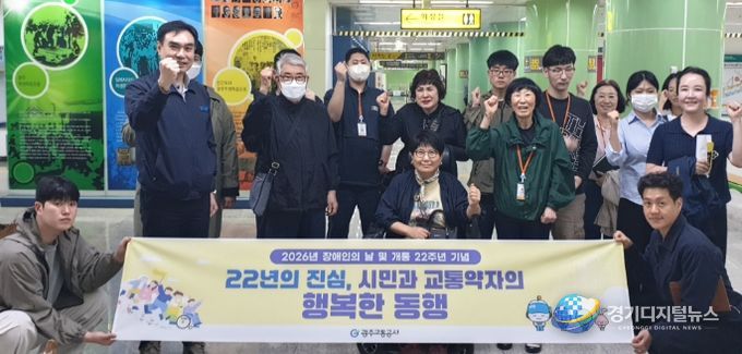 경기디지털뉴스 마성숙 기자 | 광주교통공사는 개통 22주년과 장애인의 날(4월 20일)을 맞아 지난 20일 금남로5가역에서 시민 참여형 교통약자 동행 프로그램 ‘22년의 진심, 시민과 교통약자의 행복한 동행’을 개최했다.