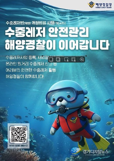 경기디지털뉴스 마성숙 기자 | 해양경찰청은 수중레저 사업장 증가와 이용객 증가에 「수중레저활동의 안전 및 활성화 등에 관한 법률」(약칭. 수중레저법)을 시행(4.23.)하며 수중레저 안전관리를 강화한다고 밝혔다.