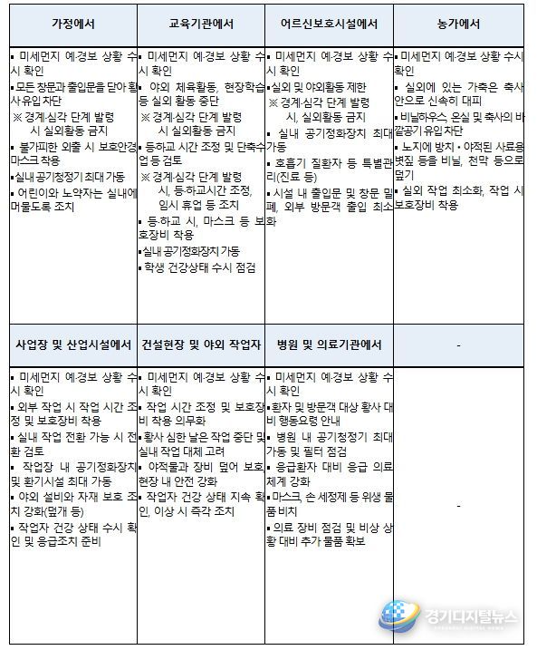 기후에너지환경부는 황사 위기경보 ‘관심’ 단계가 발령됨에 따라 관계 기관과 해당 지방정부에 곧바로 상황을 전파하고, ‘황사 재난 안내서(매뉴얼)’에 따라 철저하게 대응할 것을 요청했다.