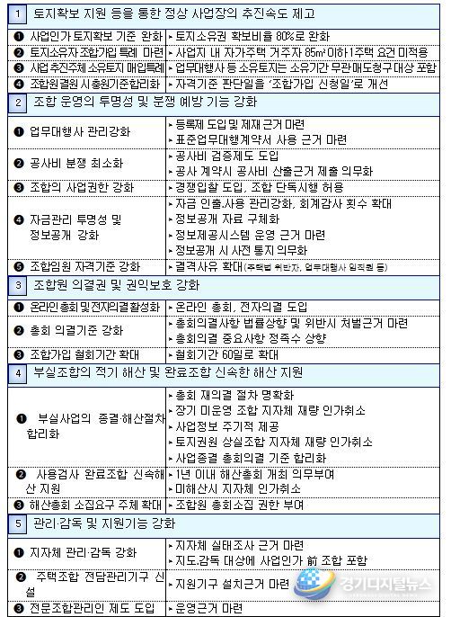 사업이 완료된 조합은 1년 이내 해산총회 개최를 의무화하고 정당한 사유없이 미해산 시 지자체가 직권으로 해산할 수 있는 근거도 마련한다.