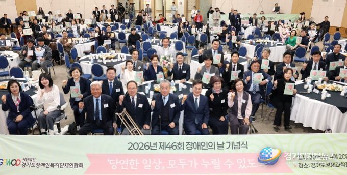 이날 기념식은 ㈔경기도장애인복지단체연합회(회장 이영재)가 주최·주관했으며, 장애인 가족과 단체 관계자 등 200여 명이 참석한 가운데 장애인 인권헌장, 축사, 공연 등으로 진행됐다.