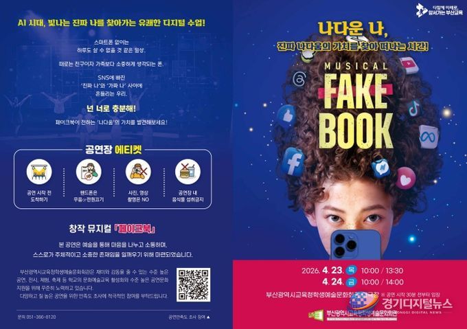 경기디지털뉴스 마성숙 기자 | 부산광역시교육청학생예술문화회관은 오는 23일과 24일 회관 대극장에서 초·중·고 학생 1,200여 명을 대상으로 ‘페이크북’ 공연을 개최한다.