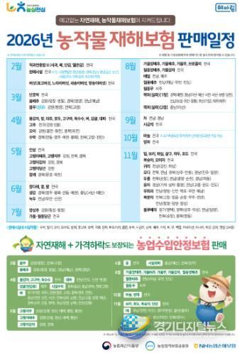 4월부터 벼·대파·고추 등을 시작으로 품목별로 순차 가입이 가능하며, 가입을 바라는 농업인은 가까운 농·축협이나 원예농협에 신청할 수 있다.