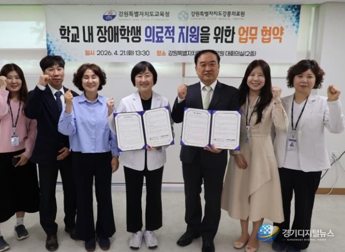 경기디지털뉴스 마성숙 기자 | 강원특별자치도교육청은 4월 21일 13시 30분, 강원특별자치도강릉의료원과 강릉·동해 지역 특수학교 중도장애학생의 학교 내 의료적 지원 강화를 위한 업무협약(MOU)을 체결한다.
