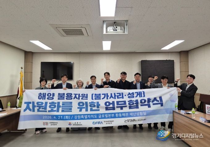 경기디지털뉴스 마성숙 기자 | 강원특별자치도 제2청사(본부장 손창환)는 4월 21일 강원특별자치도청 제2청사 환동해관에서 강릉시, 한국수산자원공단, ㈜스타스테크와 함께 ‘해양 불용자원 자원화’를 위한 업무협약을 체결했다고 밝혔다.