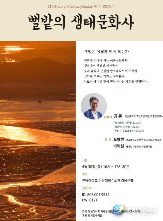 경기디지털뉴스 마성숙 기자 | 전남대학교가 갯벌과 어촌, 발효음식으로 이어지는 남도의 맛 계보를 역사학의 언어로 풀어낸다.