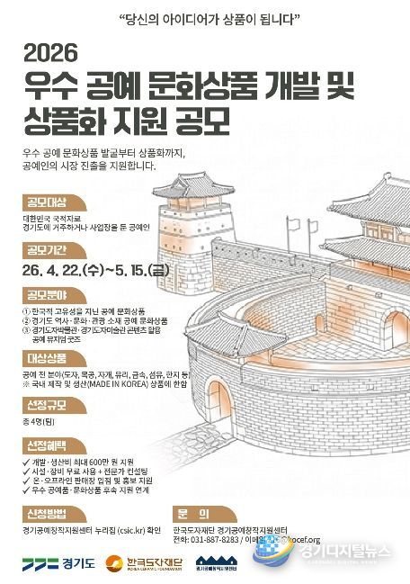 경기디지털뉴스 마성숙 기자 | 한국도자재단이 ‘2026 공예 문화상품 개발 및 상품화 지원 사업’을 본격 추진한다고 22일 밝혔다.