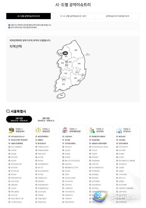 경기디지털뉴스 마성숙 기자 | 중앙선거관리위원회는 6월 3일 실시하는 제9회 전국동시지방선거를 앞두고 지역별 유권자의 관심 이슈를 정리한 「공약이슈트리」 서비스를 정책공약마당 사이트에서 공개했다.