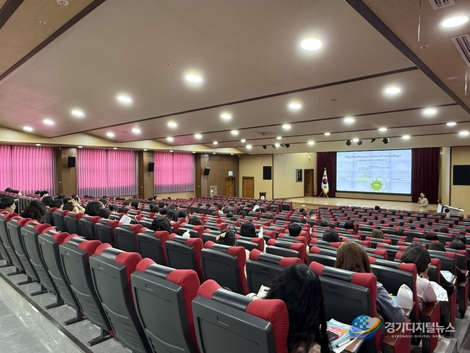 특히 이날 연수에는 명지대학교 정하나 교수가 강사로 참여해 마음챙김 이론과 실제 상담 적용 사례를 함께 제시하며 교육의 깊이를 더했다. 참석자들은 이론 중심 교육을 넘어 학교 현장에서 즉시 활용 가능한 실천적 상담 기법을 공유받으며 높은 만족도를 보였다.