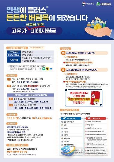 김정기 대구광역시장 권한대행 행정부시장은 “중동전쟁으로 인한 고유가·고물가로 지역경제 소비심리가 크게 위축됐다”며 “민생 안정이 최우선인 만큼, 시민분들께서 신청 단계부터 지급·사용까지 불편함이 없도록 만반의 준비를 다하겠다”고 말했다.