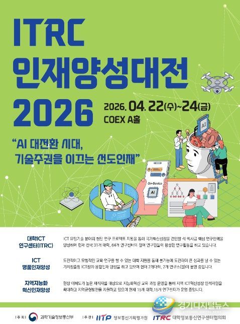 경기디지털뉴스 마성숙 기자 | 과학기술정보통신부는 4월 22일부터 4월 24일까지 3일간 국가 AI·ICT R&D 우수성과물 홍보 및사업화 기회를 제공하기 위한 '2026 정보통신(‘ICT’) 기술사업화 페스티벌'과 대학의 석박사급 인재양성 연구·교육 성과 교류·확산을 위한 '2026 ITRC 인재양성대전'을 서울 삼성동 코엑스에서 개최한다.