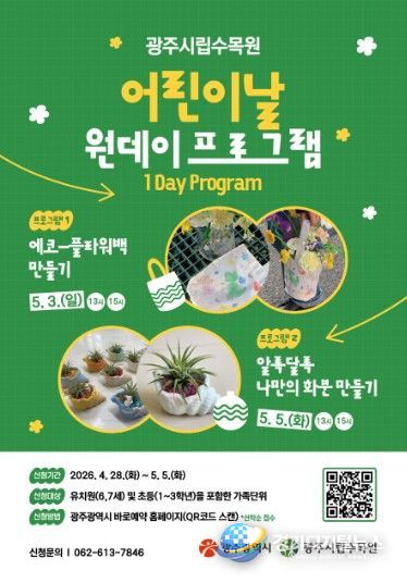 경기디지털뉴스 마성숙 기자 | 광주광역시 시립수목원은 어린이 가족이 함께 하는 ‘수목원 어린이날 원데이 프로그램’ 참가자를 오는 28일부터 선착순 모집한다.