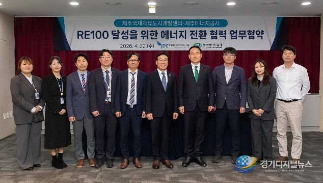 경기디지털뉴스 마성숙 기자 | 제주국제자유도시개발센터는 제주에너지공사와 ‘RE100 달성을 위한 에너지 전환 협력 업무협약’을 체결하고, 재생에너지 도입 확대와 에너지 전환 관련 사업 발굴을 위한 협력체계를 구축한다고 밝혔다.