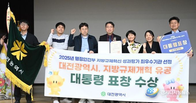 경기디지털뉴스 마성숙 기자 | 대전시는 22일 정부세종청사에서 열린 ‘2026년 지방규제혁신 시상식’에서 지방규제혁신 유공 대통령 기관표창을 수상했다.