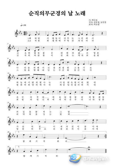 끝으로, 제1회 정부 기념행사를 개최하며 제작한 기념곡 ‘순직의무군경의 날 노래’를 가수 라포엠과 대학생연합합창단의 선도로 참석자 모두가 제창하며 기념식이 마무리된다.