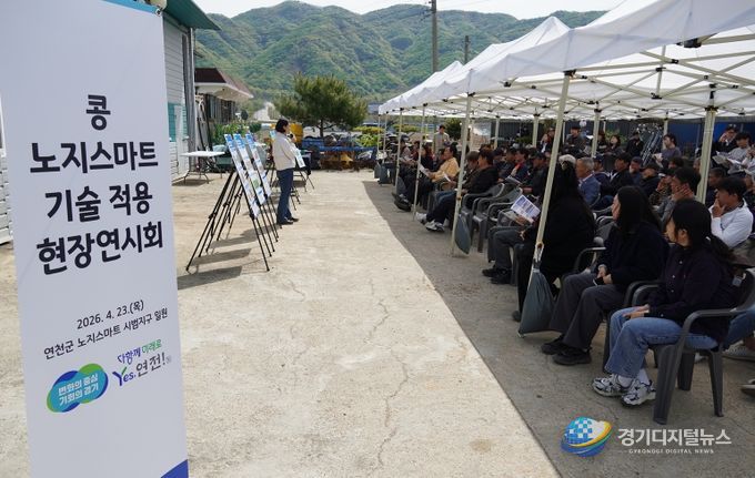 경기디지털뉴스 마성숙 기자 | 경기도농업기술원은 23일 연천군 연천읍 옥산리 일원에서 ‘콩 노지스마트 기술 적용 현장 연시회’를 열고, 최근 주목받고 있는 노지 스마트농업 기술을 선보였다.