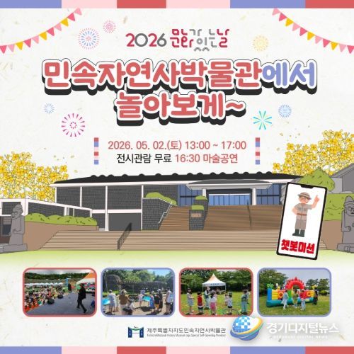 경기디지털뉴스 마성숙 기자 | 제주특별자치도 민속자연사박물관은 오는 5월 2일 오후 1시 박물관 야외 광장에서 2026년 ‘문화가 있는 날’ 첫 행사인 ‘민속자연사박물관에서 놀아보게~’를 개최한다.