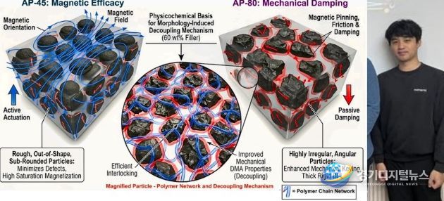 김병현 학생 연구팀은 외부 자기장에 따라 물리적 성질이 변하는 스마트 소재인 '자기유변탄성체(MRE)'의 성능을 획기적으로 조절하는 새로운 메커니즘을 규명했다.
