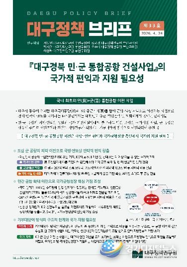 대구광역시는 대구정책연구원과 함께 ‘대구경북 민·군 통합공항 건설에 따른 국가적 편익과 지원 필요성’을 체계적으로 분석한 정책브리프를 4월 24일 발간했다.