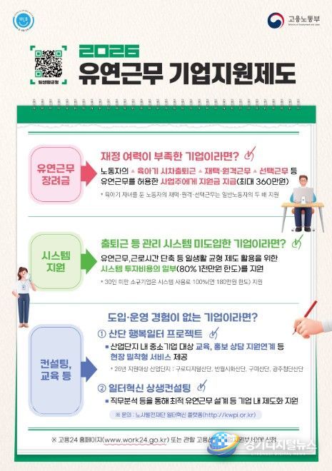 다만, 중소기업의 경우 인력 운영 부담, 시스템 구축 비용, 보안 문제 등으로 유연근무 도입과 활용에 어려움이 있는 것도 현실이다. 이에 정부는 기업 여건에 맞는 맞춤형 지원을 통해 민간 확산을 적극 뒷받침하고 있다.