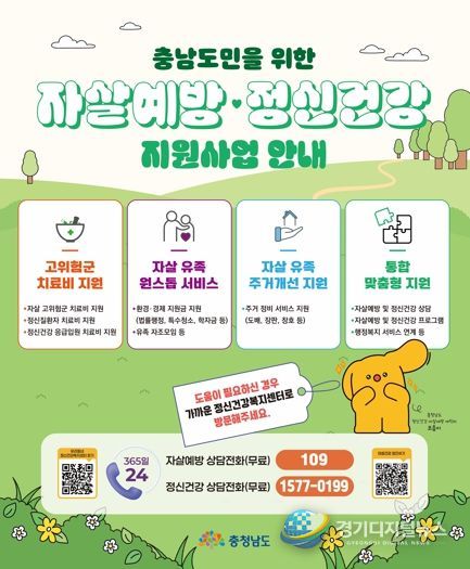 경기디지털뉴스 마성숙 기자 | 충남도는 자살 고위험 시기인 봄철을 맞아 자살예방 지원 사업 안내 등 선제적인 예방 활동에 나선다고 26일 밝혔다.