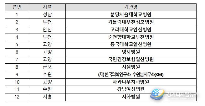 대표단에는 분당서울대학교병원, 가톨릭대학교부천성모병원, 고려대학교안산병원, 순천향대학교부천병원, 동국대학교일산병원, 명지병원, 국민건강보험일산병원, 지샘병원, (재)한국의학연구소(KMI) 수원분사무소, 사과나무치과병원, 강남여성병원, 시화병원 등 도내 의료기관 12개소가 참여했다.