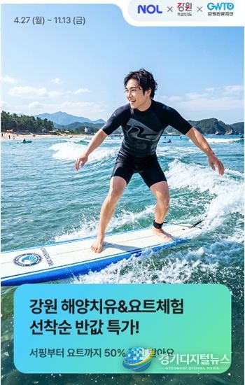 경기디지털뉴스 마성숙 기자 | 강원특별자치도는 강원관광재단과 함께 동해안의 해양레저 관광을 재조명하고, 지역 관광산업에 새로운 활력을 불어넣기 위해 2026년 4월, ‘해양레저관광 할인 기획전’을 온라인 여행사를 통해 추진한다.