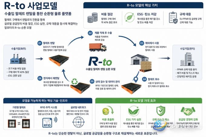 이러한 가운데 국내 물류기업 알포터가 추진 중인 ‘R-to 수출입 팔레트 렌탈 사업’이 기존 구조를 근본적으로 바꾸는 대안으로 주목받고 있다. 심층 취재 결과, 이 사업은 단순한 렌탈 모델을 넘어 글로벌 공급망 운영 방식을 재편하는 플랫폼형 비즈니스로 확장되고 있는 것으로 나타났다.