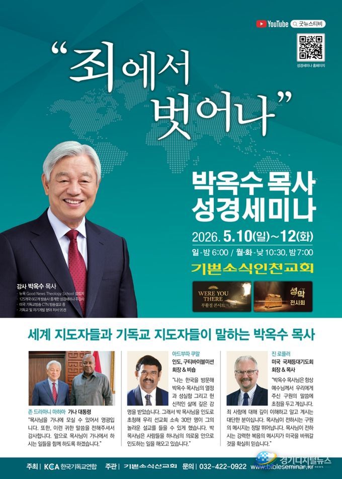 경기디지털뉴스 마성숙 기자 | ‘2026 박옥수 목사 성경세미나’가 5월 10일(일)부터 12일(화)까지 3일간 기쁜소식인천교회에서 열린다.