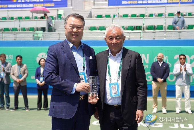 대회 마지막 날인 지난 26일 단식 경기 시상식에서 대한테니스협회주원홍 회장은 최재운 충남테니스협회장, 정을진 전북테니스협회장, 광주광역시테니스협회 김광희 회장, 차현호 부회장 등 관계자 등 이 참석한 가운데 광주광역시체육회 전갑수 회장에게 감사패를 전달했다.