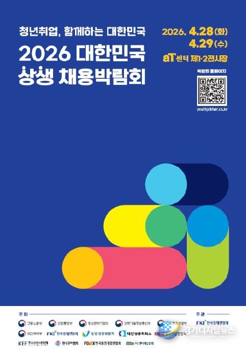 경기디지털뉴스 마성숙 기자 | 고용노동부를 비롯한 관계부처(과학기술정보통신부・문화체육관광부・산업통상부・보건복지부・중소벤처기업부) 및 한국경제인협회 등 경제단체는 공동으로 청년의 일자리 기회 확대를 위해 4월 28일과 29일, 서울 양재 aT센터에서 「2026 대한민국 상생 채용박람회」를 개최한다.