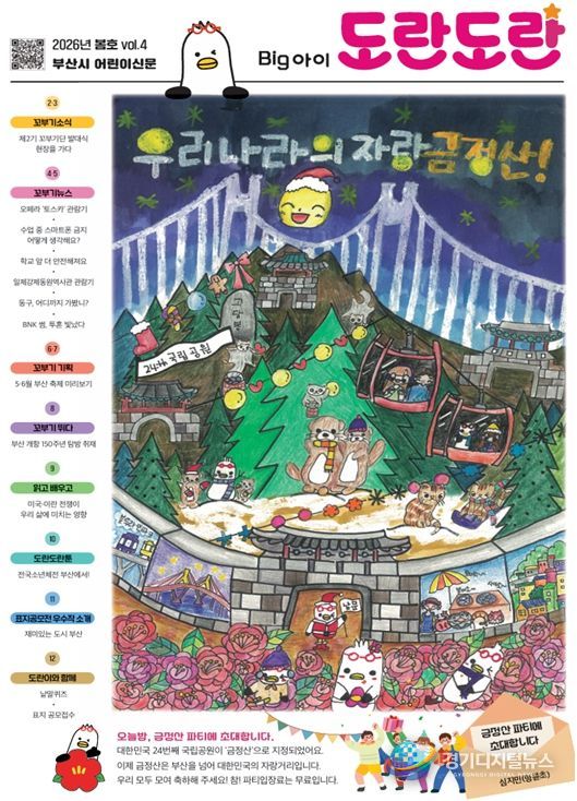 경기디지털뉴스 마성숙 기자 | 부산시는 어린이의 눈높이에서 부산의 매력을 전하는 참여형 신문, 부산 어린이신문 '빅(Big)아이 도란도란' 2026년 봄호(제4호)를 오는 4월 30일 발행하고 본격적인 배포에 나선다고 밝혔다.