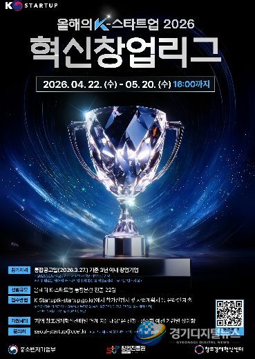 경기디지털뉴스 마성숙 기자 | (재)충남창조경제혁신센터는 오는 5월 20일 16시까지 우수한 기술력과 사업모델을 보유한 창업기업을 대상으로 ‘올해의 K-스타트업 2026’ 혁신창업리그(예선) 참가자를 모집한다고 밝혔다.