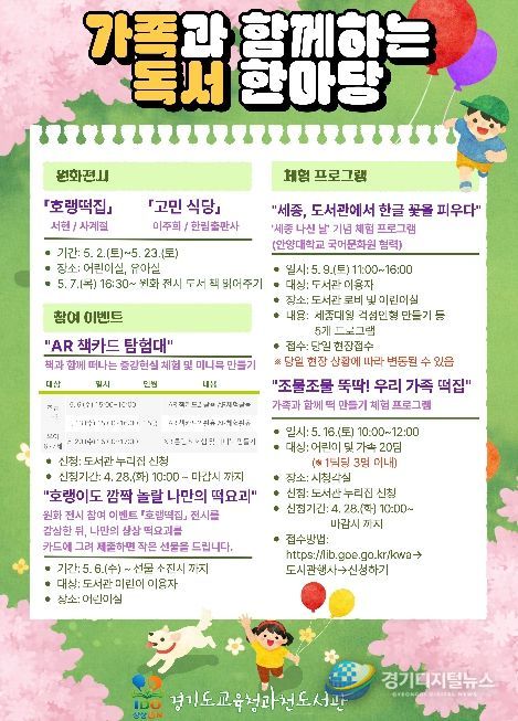 경기디지털뉴스 마성숙 기자 | 경기도교육청과천도서관이 5월 가정의 달을 맞아 ‘가족과 함께하는 독서 한마당’을 운영한다.