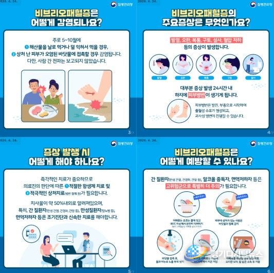 정광선 전남도 보건복지국장은 “전남은 전국에서 해안지역이 가장 많아 감염 위험이 상존하므로 간질환, 당뇨 등 기저질환이 있는 환자는 어패류를 끓여먹고, 피부 상처가 있는 사람은 바닷물 접촉을 삼가는 등 각별한 주의를 기울여야 한다”고 당부했다.