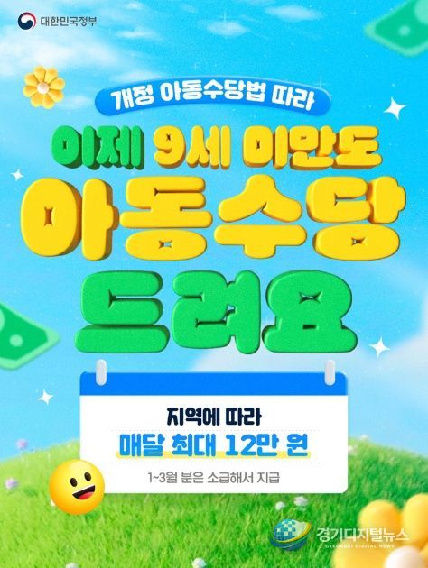 경기디지털뉴스 마성숙 기자 | 개정 아동수당법 따라 이제 9세 미만도 아동수당 드려요.