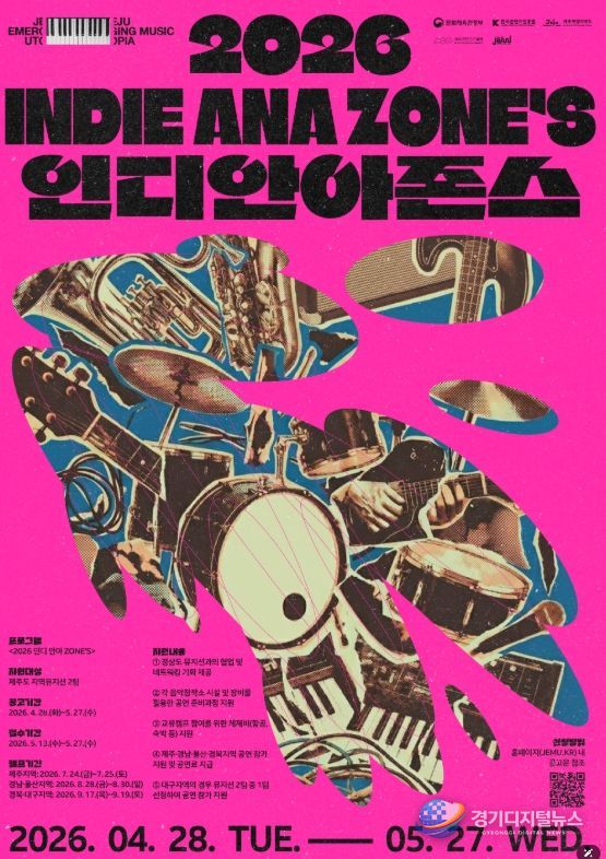경기디지털뉴스 마성숙 기자 | 제주특별자치도와 (재)제주콘텐츠진흥원(원장 강민부)이 제주와 경상권 지역 뮤지션 간 협업과 교류 공연을 위한 프로젝트 '2026 인디 안아 Zone’s'참여뮤지션을 모집한다.