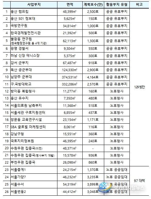특히, 이번 국무회의 시 의결된 물량 중 1.29 방안 물량은 총 2.2만 호 규모이며, 이 중 1.3천 호와 (예비타당성조사 비대상인) 소규모 사업 등 1.6천 호를 합하여 총 2.9천 호를 ’27년 착공할 계획이다.