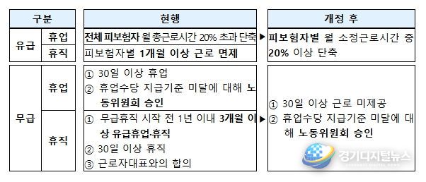휴업, 휴직 등 유형별로 달리 정하고 있는 고용유지지원금 지원 요건은 ‘근로를 제공하지 아니하는 조치’로 통일된다. 복잡한 신청 요건을 단순화하여 현장의 이해와 활용도를 높일 수 있을 것으로 기대된다.