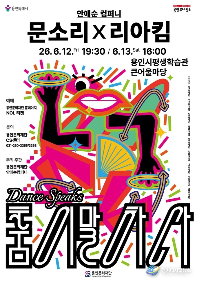 용인문화재단은 오는 6월 12일부터 13일까지 용인시평생학습관 큰어울마당에서 안애순 컴퍼니의 ‘춤이 말하다: 문소리×리아킴’ 공연을 개최한다고 밝혔다.