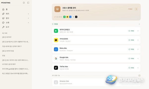 픽켓팅의 주력 AI에이전트 'PICKY(피키)'는 강화학습(Reinforcement Learning) 기반 멀티채널 광고 자동화 플랫폼이다. 네이버, 메타, 구글, 카카오 등 주요 광고 채널을 단일 대시보드로 통합 운영하며, AI가 실시간으로 예산을 재분배하고 소재를 최적화한다. 광고 운영 경험이 없는 초기 창업자도 복잡한 세팅 없이 즉시 광고를 시작할 수 있도록 설계된 것이 가장 큰 특징이다.