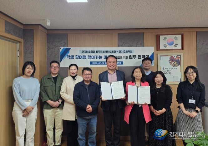 경기디지털뉴스 마성숙 기자 | 제주도교육청 하귀초등학교는 27일 한국미술협회 제주특별자치도지회와 ‘학생 참여형 찾아가는 미술관’ 운영을 위한 업무협약(MOU)을 체결했다.