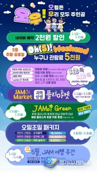 이외에도 보다 많은 관람객이 부담 없이 방문할 수 있도록 5월 주말 및 공휴일에는 관람료 5천원 이벤트도 진행되며 5월 3일부터 5월 5일까지 도내 중소상공인 판로지원을 위한‘JAM이 Market’도 운영된다. 자세한 내용은 제주항공우주박물관 홈페이지에서확인할 수 있다.