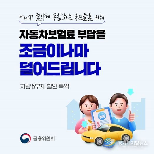 경기디지털뉴스 마성숙 기자 | 에너지 절약에 동참하는 국민들을 위해, 자동차보험료 부담을 조금이나마 덜어드립니다.