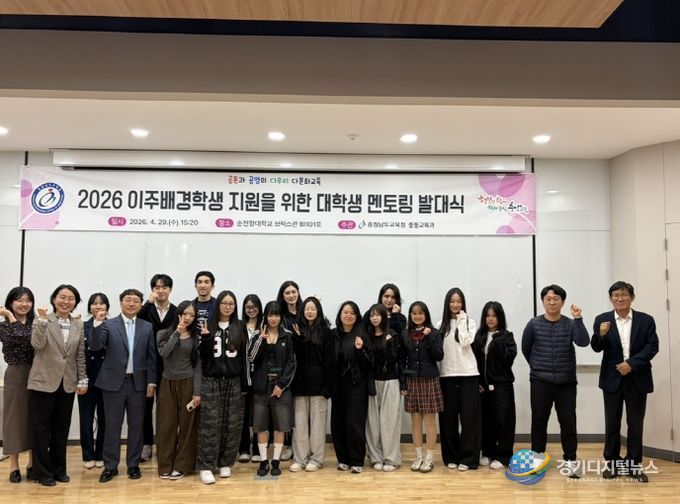 경기디지털뉴스 마성숙 기자 | 충남교육청은 29일, 순천향대학교(아산)에서 순천향대 지도자 학생 6명과 온양용화고·아산충무고 학생 20명, 담당 교사 등 30여 명이 참석한 가운데 ‘2026 이주배경학생 지원을 위한 대학생 지도 발대식’을 개최했다.