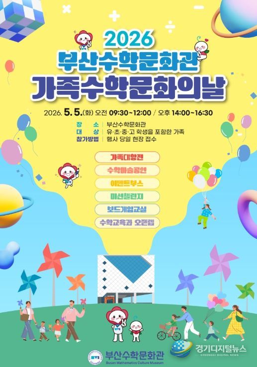 경기디지털뉴스 마성숙 기자 | 부산광역시교육청창의융합교육원은 가정의 달을 맞아 오는 오는 5월 5일 부산수학문화관에서 유·초·중·고 학생과 가족을 대상으로 ‘가족 수학 문화의 날’ 행사를 개최한다.