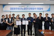 경기디지털뉴스 마성숙 기자 | 제주테크노파크(원장 지영흔,제주TP)와 공공과학기술연구노동조합 제주TP지부(위원장 최연택, 지부장 권철만)이 화합과 신뢰를 바탕으로 한 ‘단체협약’을 체결하며, 상생적 노사관계 정착과 지역 혁신성장의 동반자로서 공동 발전을 다짐했다. 제주TP는 8일 오후 제주벤처마루에서 지영흔 제주TP 원장과 최연택 공공과학기술연구노동조합 위원장 등 노사 관계자들이 참석한 가운데 단체협약 체결식을 진행했다고 밝혔다. 이번 협약은 지난 2024년 11월 발표된 ‘노사 상생협력 공동선언’ 이후, 약 1년간 수차례의 본교섭과 실무협의를 거쳐 이끌어낸 결실이다. 양측은 총 141개 조항에 대한 최종 합의를 도출하며 성숙한 노사관계 정착에 뜻을 모았다. 주요 합의 내용은 조합원의 근로조건 개선과 권익 보호를 위한 제도적 기반마련에 초점을 맞췄다. 구체적으로는 ▲인사 및 징계 등에 대한 조직 공정성 확립 ▲원활한 노동조합 활동 보장 ▲고용안정 및 적정인력 확보 노력 ▲일·가정 양립 지원 강화 등이 포함됐다. 제주TP와 노동조합은 이번 단체협약을 통해 안정적인 조직 운영을 위한 제도적 토대를 마련