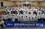 경기디지털뉴스 마성숙 기자 | 광주광역시체육회(회장 전갑수)가 16일 오후 국민생활관 세미나실에서 ‘전국생활체육대축전’에 참가하는 선수단의 선전을 기원하는 결단식을 개최했다. 이날 결단식에는 전갑수 광주광역시체육회장을 비롯해 구제길 동구체육회장, 정천규 서구체육회장, 정희환 북구체육회장, 배영모 광산구체육회장, 광주광역시체육회 윤웅철, 박종규 부회장 등 종목단체 관계자 180여명이 참석해 선수단의 선전을 기원했다. 이날 행사는 선수단의 훈련 모습과 주요 활약상을 담은 영상시청을 시작으로 참가계획 보고, 선수대표 선서와 단복전달식 순으로 진행됐다. 선수 선서에는 당구 박종문(79세) 선수와 체조 전양숙(74세) 선수가 함께 나서 선수단의 힘찬 각오를 밝혔다. 오는 23일부터 경상남도 김해시 일원에서 열리는 ‘2026 전국생활체육대축전’에는 축구, 탁구, 파크골프 등 31개 종목 700명(선수 626, 임원 74)의 선수단이 참가할 예정이다. 전갑수 체육회장은 “이번 결단식은 3년 만에 개최되는 뜻깊은 자리로, 광주선수단이 한자리에 모여 결의를 다지는 의미 있는 시간”이라며 “안전을 최우선으로 생각하며