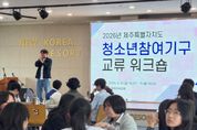 경기디지털뉴스 마성숙 기자 | 제주특별자치도청소년활동진흥센터는 4월 10~ 11일, 1박 2일간 제주시 애월읍 뉴코리아리조트에서 '2026 청소년참여기구 교류 워크숍'을 개최했다. 이번 워크숍은 ‘제주의 판을 바꾸는 청소년 정책의제 발굴’을 주제를 내걸었다. 도내 청소년참여위원회와 청소년운영위원회 등 다양한 참여기구가 한자리에 모여, 단순한 이론 교육을 넘어 실제 정책을 기획하고 제안하는 ‘실천형 프로그램’으로 기획됐다. 1일차 : 교류의 물꼬를 트고 정책의 기초를 세우다 행사 첫날인 10일에는 도내 청소년위원과 지도사 등 약 120명이 참석한 가운데 열띤 분위기 속에 시작됐다. △오리엔테이션 & 공동체 활동: 서먹함을 깨는 아이스브레이킹과 팀 빌딩 활동을 통해 서로 다른 소속의 청소년들이 화합하는 시간을 가졌다. △심리정서 안전교육: 안전하고 유익한 활동을 위해 프로그램 시작 전 철저한 사전 안전 수칙 교육이 이뤄졌다. 워크숍에 참여한 한 청소년은 “다른 기관 친구들과 의견을 나누며 새로운 시각을 얻을 수 있었다”며 “우리가 만든 아이디어가 실제 정책으로 이어질 수 있다는 기대감에