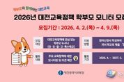 경기디지털뉴스 마성숙 기자 | 대전시교육청은 2026년 대전 교육 정책 학부모 모니터를 4월 2일부터 9일까지 각급 학교 학부모를 대상으로 모집한다고 밝혔다. 대전 교육 정책 학부모 모니터단은 교육 정책 전반에 대한 학부모의 다양한 의견을 체계적으로 수렴하여 정책에 반영하고, 교육 공동체 간 소통을 활성화함으로써 정책에 대한 이해도를 높이기 위해 운영하고 있다. 이를 통해 교육 수요자의 요구와 현장의 목소리를 반영한 공감형 교육 정책 추진을 도모하고 있다. 지난해에는 학부모 875명으로 대전 교육 정책 학부모 모니터단을 구성하여 ‘사전 정보 공표 운영 만족도 조사’ 등 총 17건의 대전 교육 정책 관련 온라인 설문 조사를 실시했다. 조사 결과를 면밀히 분석하여 정책 개선에 43건을 반영했으며, 모니터단 활동에 적극 참여한 우수 학부모 모니터 27명에게 교육감 표창을 수여했다. 학부모 모니터는 대전 교육 정책에 관심이 있는 학부모라면 누구나 지원할 수 있다. 모니터단으로 선정된 학부모는 4월부터 내년 2월까지 활동하며 ‘IB 프로그램에 대한 인식 및 요구 조사’ 등 총 17개 대전 교육 정책 전반에 대한 온라인